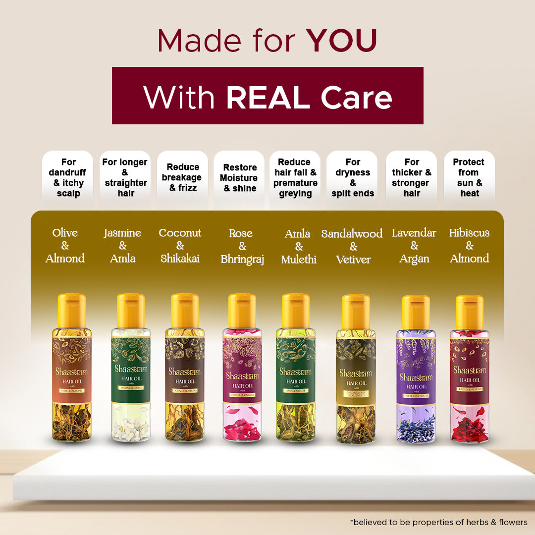 Bring out the natural lustre of your hair with Shaastram Hibiscus & Almond Herbal Hair Oil, enriched with real herbs and flowers. This nourishing blend of Hibiscus and Almond Oil strengthens hair roots, reduces breakage, and restores smoothness and shine to dull, lifeless strands. Paired with a Pure Neem Comb, the combo ensures even oil distribution, gently massages the scalp, and promotes circulation for healthier hair growth. Hibiscus helps condition and hydrate, while Almond Oil adds softness and silky texture, leaving hair vibrant and radiant. Lightweight, non-sticky, and deeply nourishing, this hair oil turns your daily routine into a revitalizing ritual, strengthening roots, enhancing shine, and leaving hair soft, manageable, and full of natural gloss.